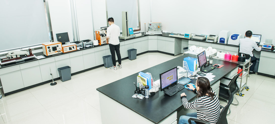 Our test center has a complete set of test equipment, raw material would be tested before using on producing line, and finished sewing thread would be tested for its evenness, hairiness, strength, color fastness and sewing performance, only qualified thread could be shipped out to customers.